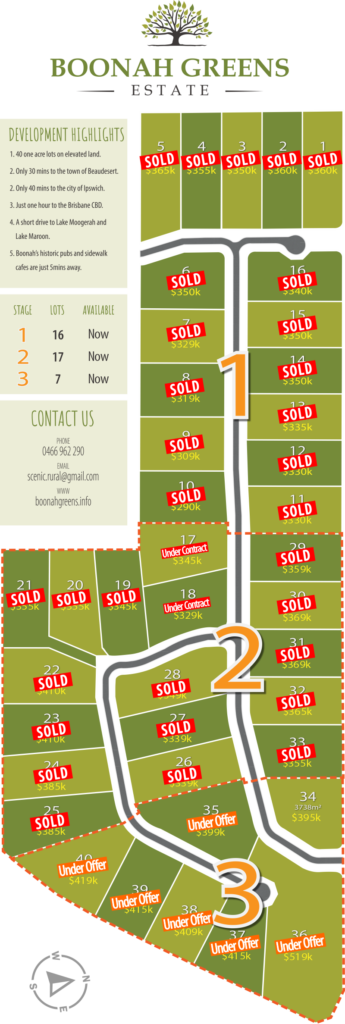 Situated on the picturesque site of the old Boonah golf course, you will find lots looking both east and west over the rolling hills of the Scenic Rim which surround the historic town of Boonah .